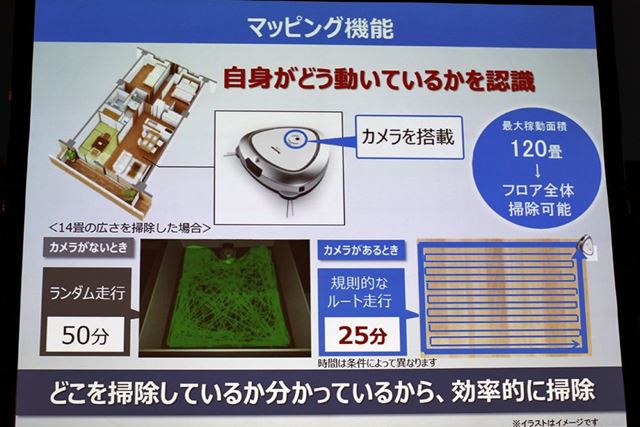 ↑こちらはパナソニックのルーロですが、ご覧のように部屋を縁取りして、自分がどのように動けば最短で効率よく作業できるか考えて掃除をしてくれます。