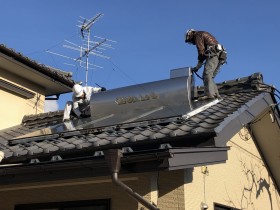 飯田・下伊那では日照時間等の条件がいいので、現在では太陽光発電システムを設置される方が増えてきていますが、この太陽熱温水器を設置されているお宅も多く見られます。どちらも、お陽さま