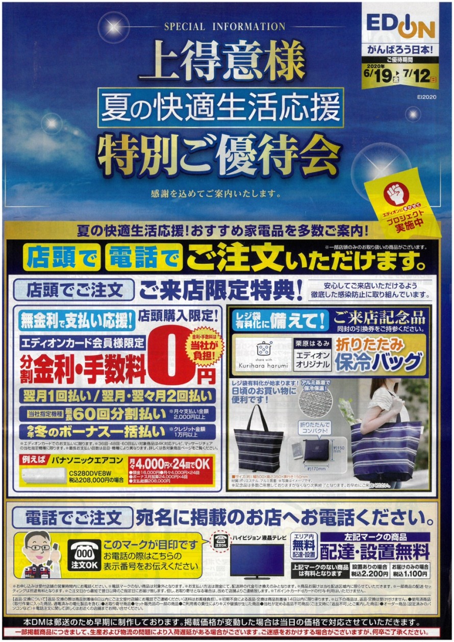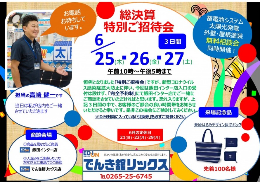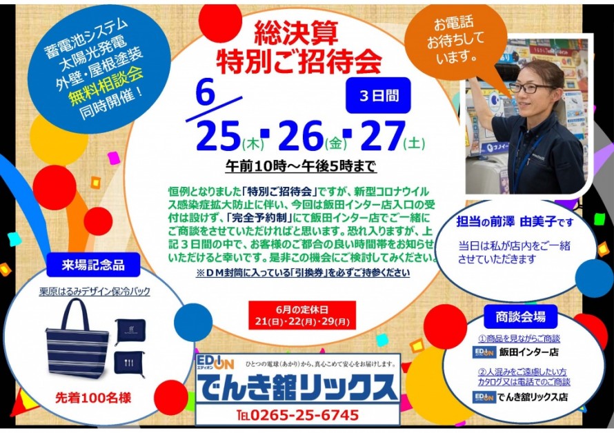■上得意様「特別ご優待会」■ 飯田市 エディオン でんき舘リックス