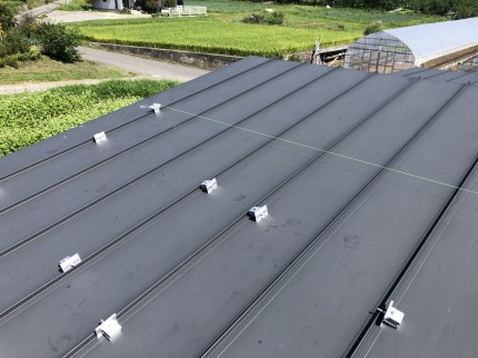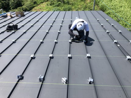 まず、屋根に墨だしをして太陽光パネルの設置位置を出していきます!