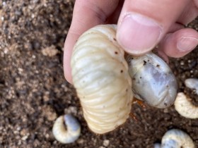 菌床シイタケの廃菌床放置からのカブト虫誕生です
