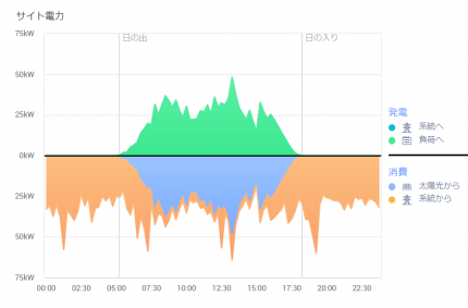 お客様の工場の使用電力に合わせて、パワーコンディショナ(PCS)が、その使用量を超えないように追従して稼働します
