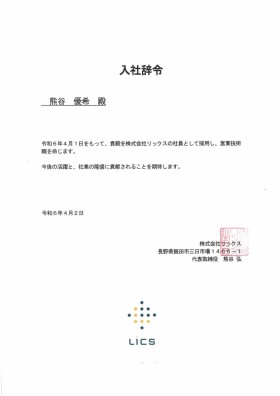 はじめまして! この度、株式会社リックスに入社しました、熊谷優希と申します!