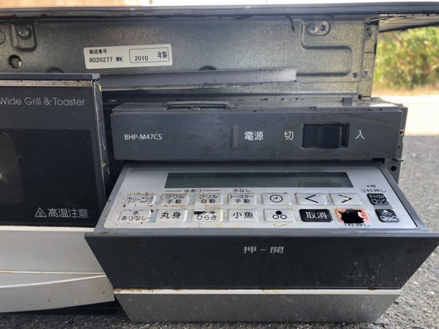 操作パネルを見てみると完全にIHの加熱スタートボタンが陥没してしまっていて操作ができない状態になっています。大変長い間使われていたことが伝わりますよね、、