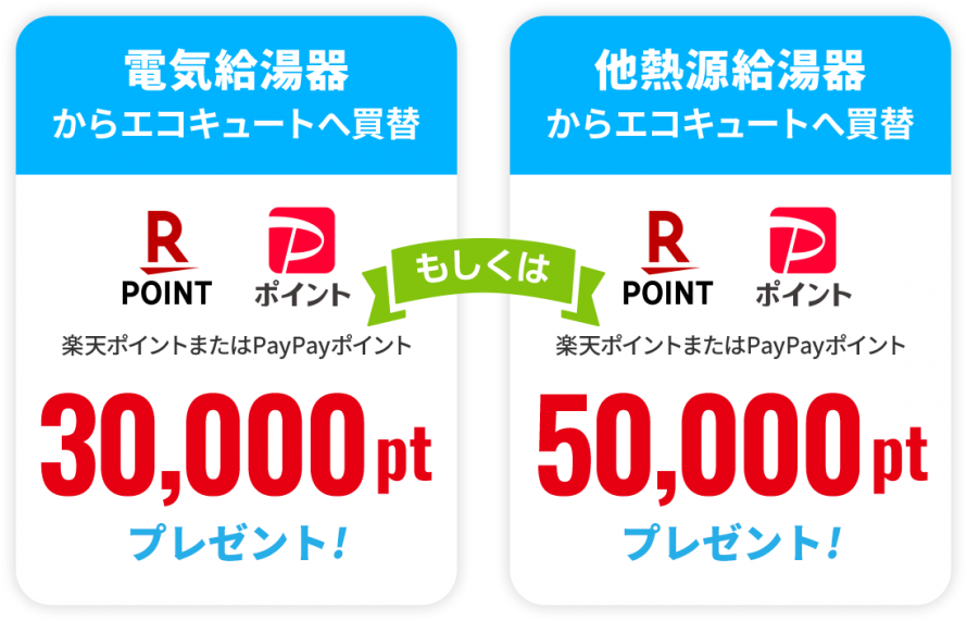キャンペーン期間中に、エディオンのエコキュートを買い替え購入されたカテエネ会員様に、楽天ポイント、またはPayPayポイントプレゼント!