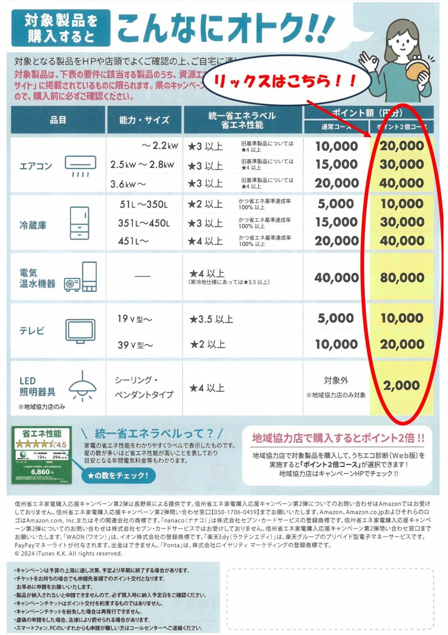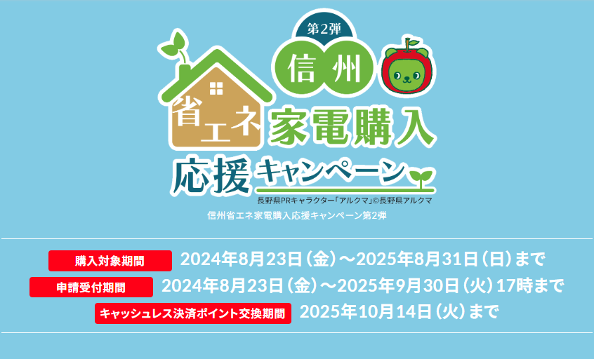 2024年8月から始まっている信州家電購入キャンペーンですが、期間延長されました