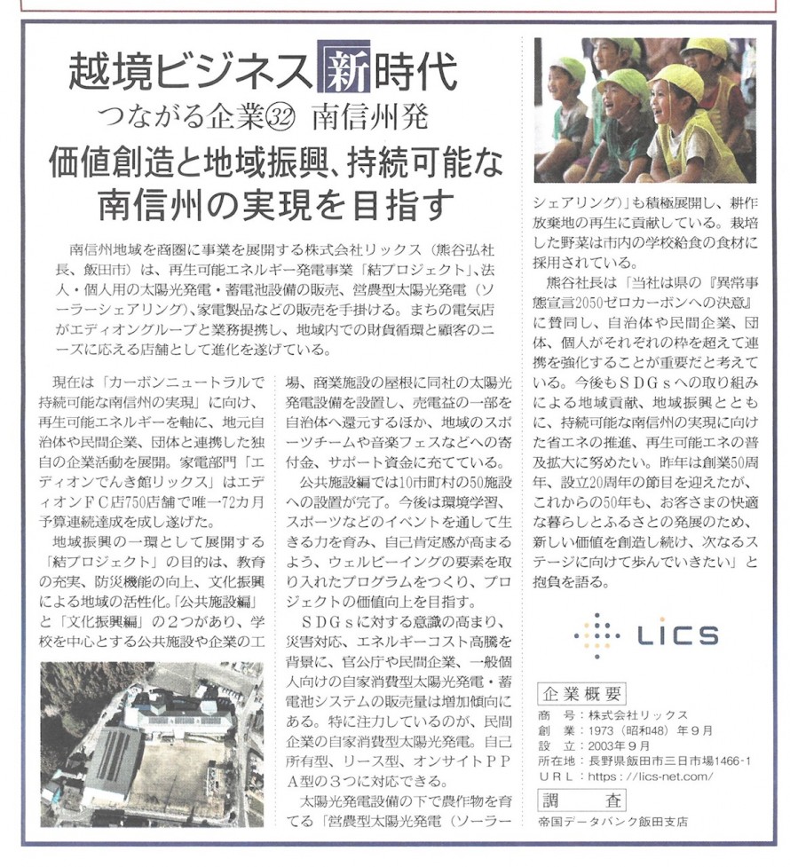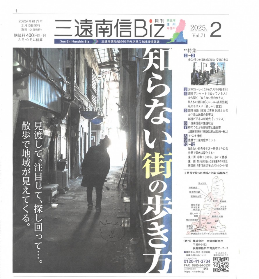 三遠南信地域(東三河・遠州・南信州)の10年先が見える越境情報誌「三遠南信Biz」(発行:南信州新聞社)に弊社が掲載されました