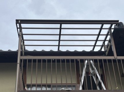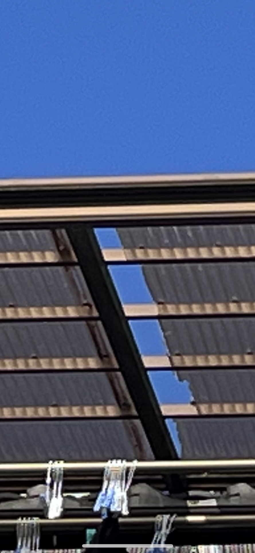 飯田市在住のM様、先日の強風でベランダの屋根が壊れてしまったとお問い合わせがありました。