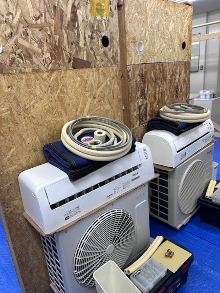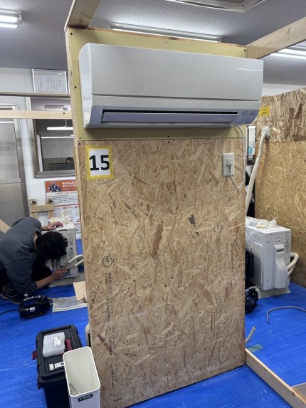 座学からエアコンの取付、運転、取り外しまで学べます。