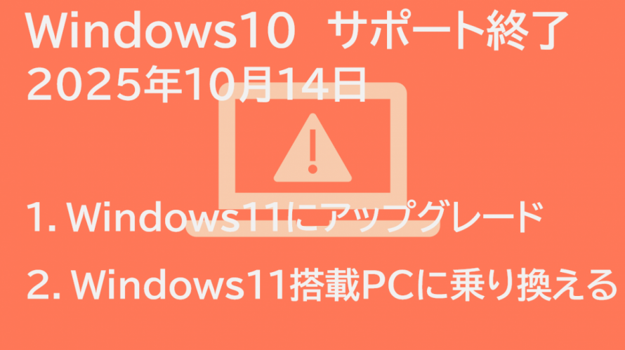 Windows10が2025年10月14日でサポート終了します。