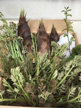 タラの芽3種類(棘有・棘無・こまみどり)、ワラビ、筍、山椒