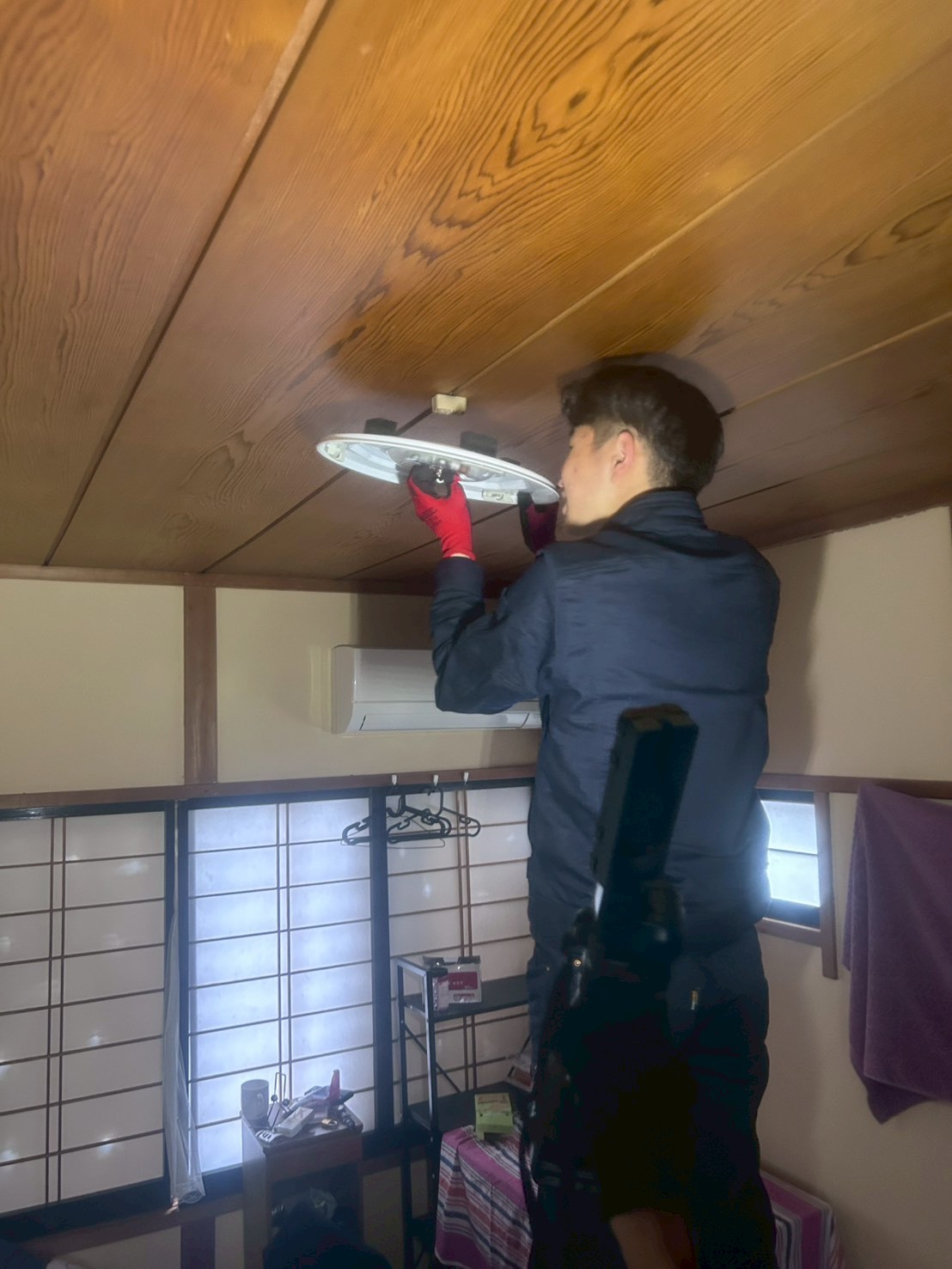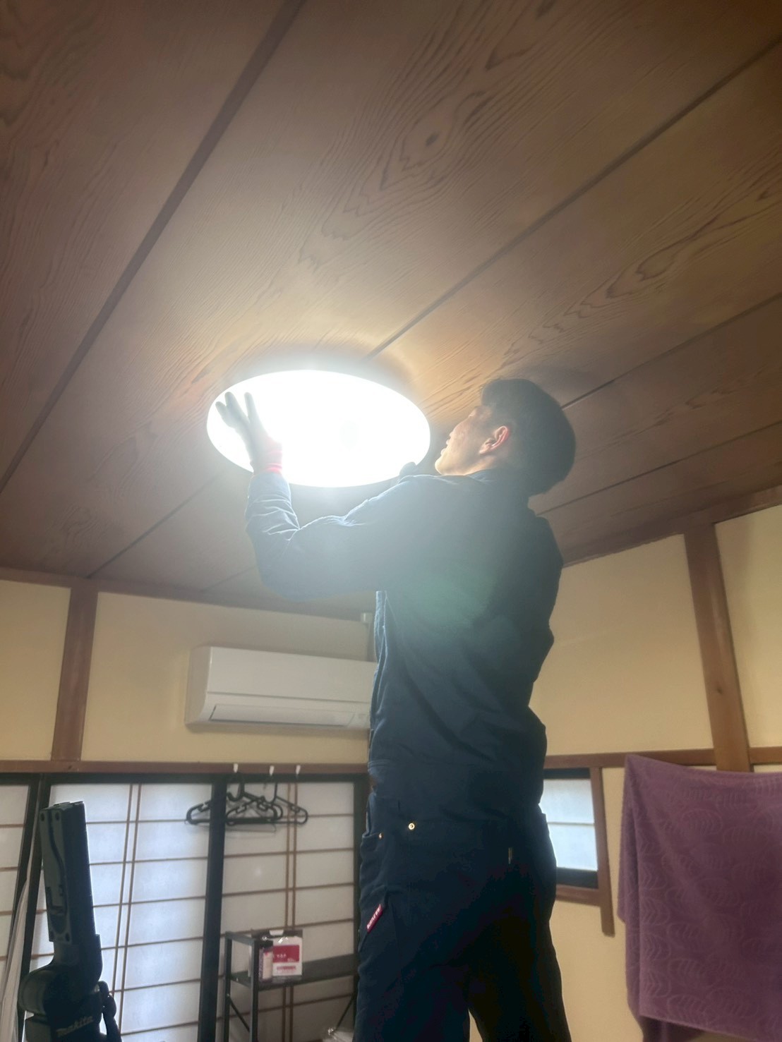 先日、照明取替工事に同行させていただきました。